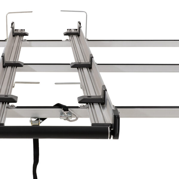 Le système de support à échelle Multi-Slide offre une solution pour le transport de votre échelle d’extension ou de votre escabeau sur votre véhicule. Les systèmes Multi-Slide sont équipés d’un rouleau arrière pour aider à guider l’échelle sur les tampons en polypropylène le long des rails de l’échelle.