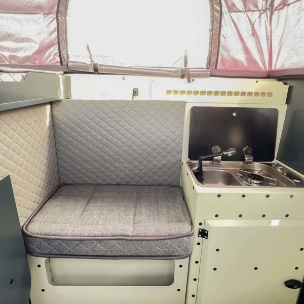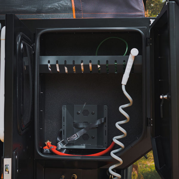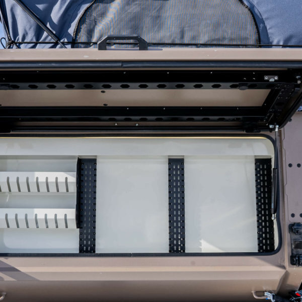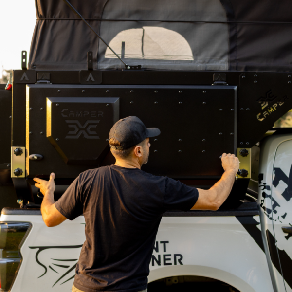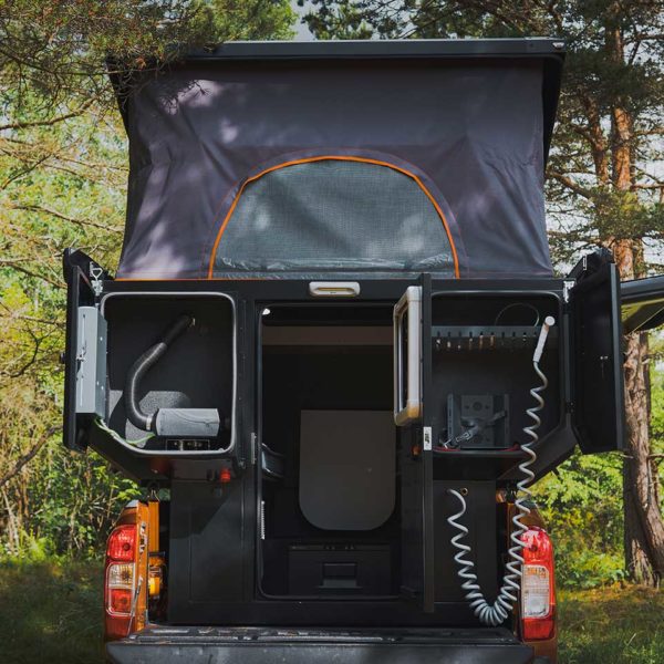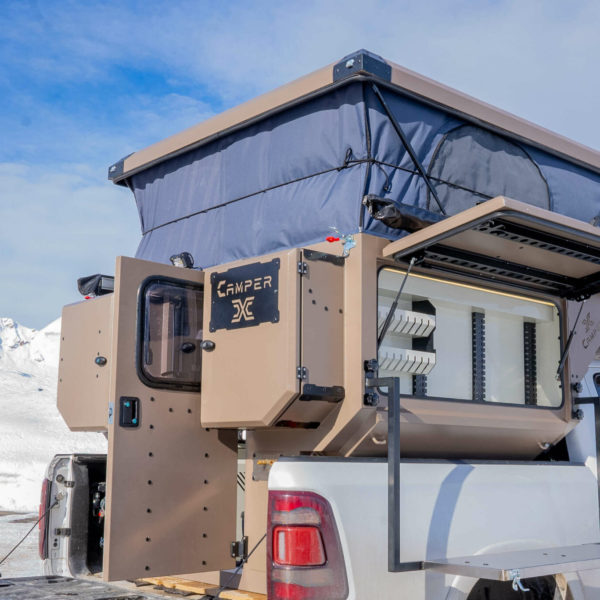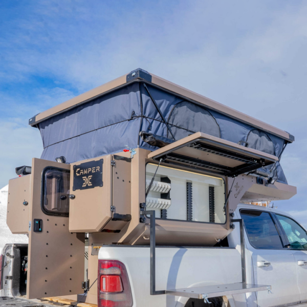 Elle est optimisé pour tenir dans des dimensions minimalistes qui tiennent dans la benne de votre pick-up. Effectivement l’aménagement de votre cellule ultra compacte et robuste Camper X contient tout l’équipement et les accessoires de base dont vous aurez besoin si vous comptez camper :