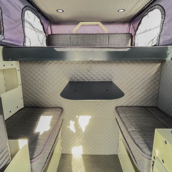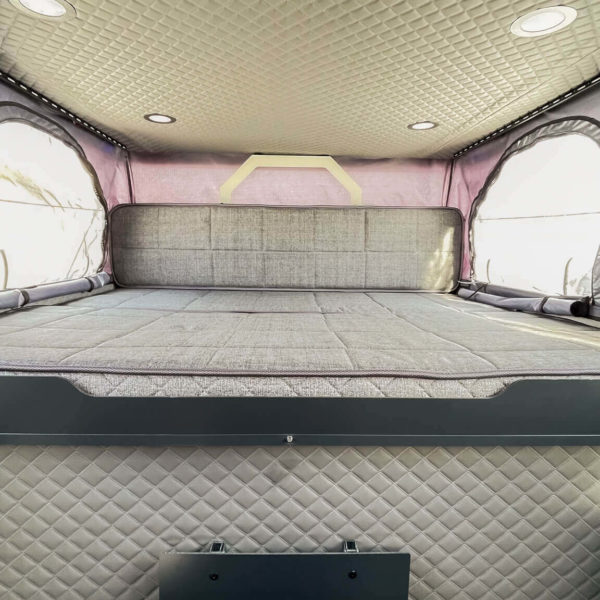Le modèle de cellule Camper X est spécialement conçu pour être le plus compact possible. En effet les dimensions intérieures de la cabine sont de 298 x 190 x 140 m (214 ouvert).