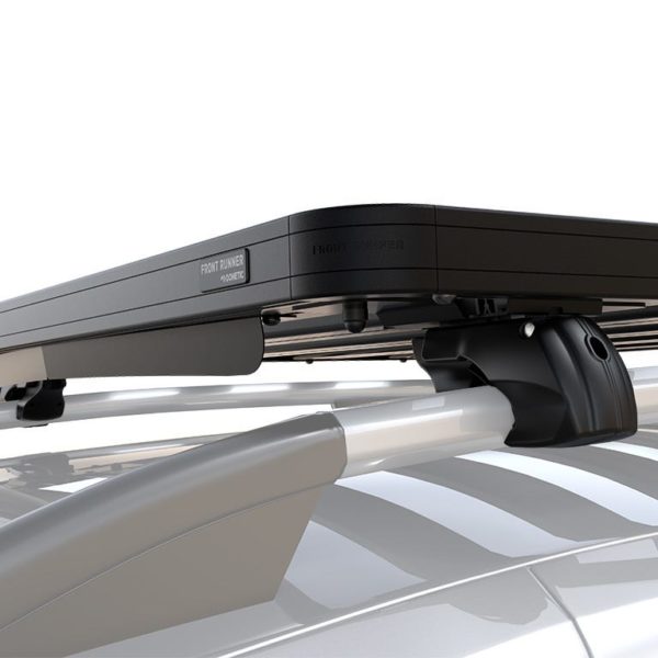 Ce kit de barres de toit Slimline II de 1156 mm de long contient le plateau Slimline II, le déflecteur d’air et deux paires de pieds de rail surélevés pour fixer le plateau Slimline II aux barres de toit de votre véhicule. Ce système s’installe facilement grâce à des pieds résistants qui s’accrochent aux barres de toit existantes. Aucun perçage n’est nécessaire.