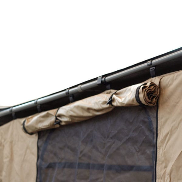 Une clôture à quatre parois qui équipe le Front Runner TENT036 pour une intimité de jour ou même pour une utilisation comme tente. Facile et rapide à monter et à démonter. La paroi frontale glisse dans un rail intégré dans le faisceau de l’auvent. Les parois latérales ont un crochet en nylon qui s’attache sur le chevron à chaque extrémité. Il y a une fenêtre à chaque paroi latérale et il y a une porte dans la paroi frontale.Les fenêtres et la porte ont un mousquetaire et un rabat en toile.La paroi arrière comporte des fermetures éclair pour accéder au véhicule.Créez une tente entièrement fermée avec le AWNI044.