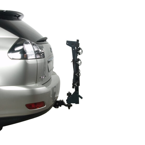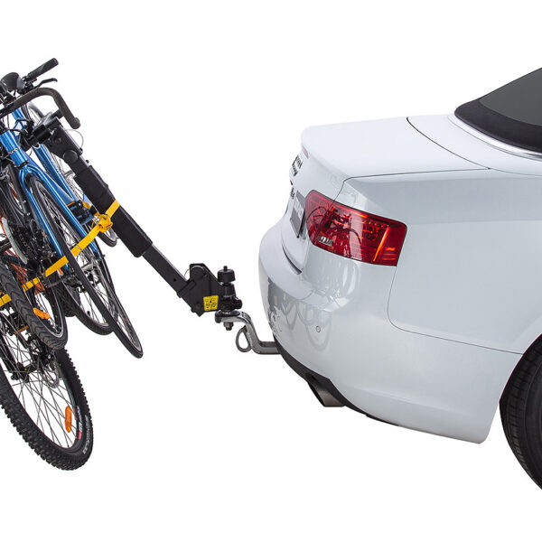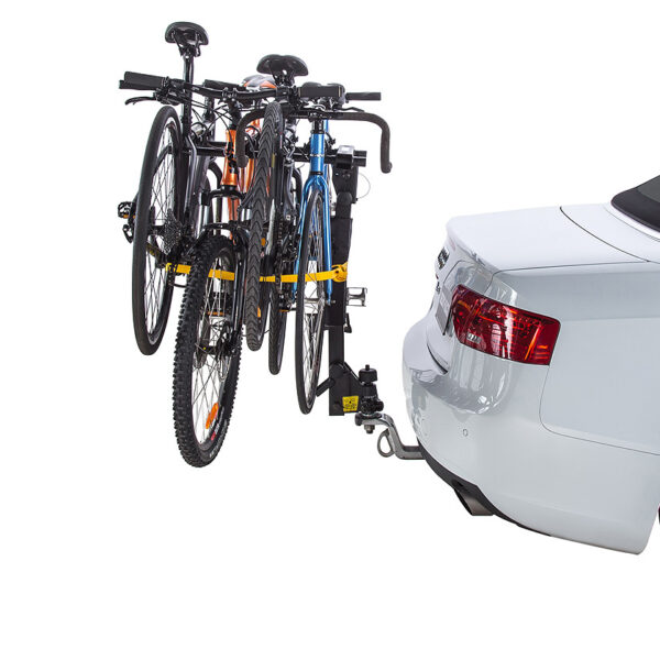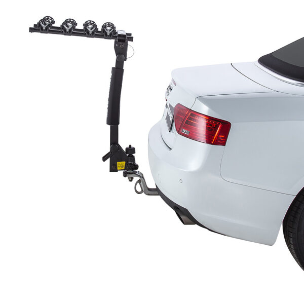 Le porte-vélos monté sur boule d’attelage permet de fixer jusqu’à 4 vélos à l’arrière du véhicule. Le bras repliable permet également d’accéder à l’arrière du véhicule lorsque aucun vélo n’est fixé.