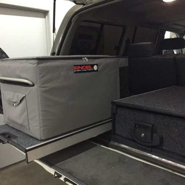 Roller Floor is a fantastic new product. The Roller Floor sits only 140 mm off the vehicle floor, enabling lower mounting and easier access to items such as fridges or tool boxes. The Roller maximizes storage space with an incorporated slide out tray. When not housing a refrigerator, the Roller Floor has a flat top that’s far more convenient to sit other items on than a traditional steel fridge slide. Ever tried to sit your groceries on top of a traditional fridge slide?