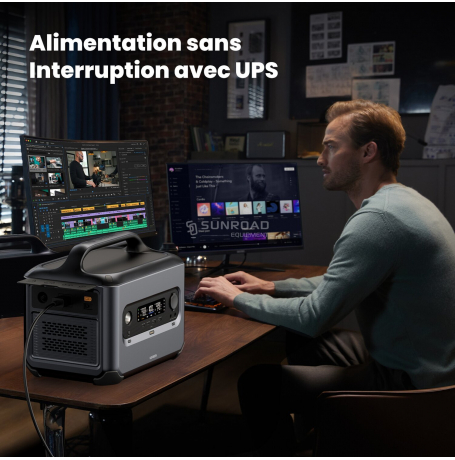 Avec la technologie U-Turbo, la PowerRoam GS600 alimente des appareils jusqu’à 965W selon le modèle de votre station. Le mode urgence 0 % prolonge la durée de charge pendant 7 heures pour des fonctions essentielles telles que recharger un téléphone ou alimenter des lumières. La fonction UPS assure une alimentation continue en cas de panne, avec un basculement en 20 ms.