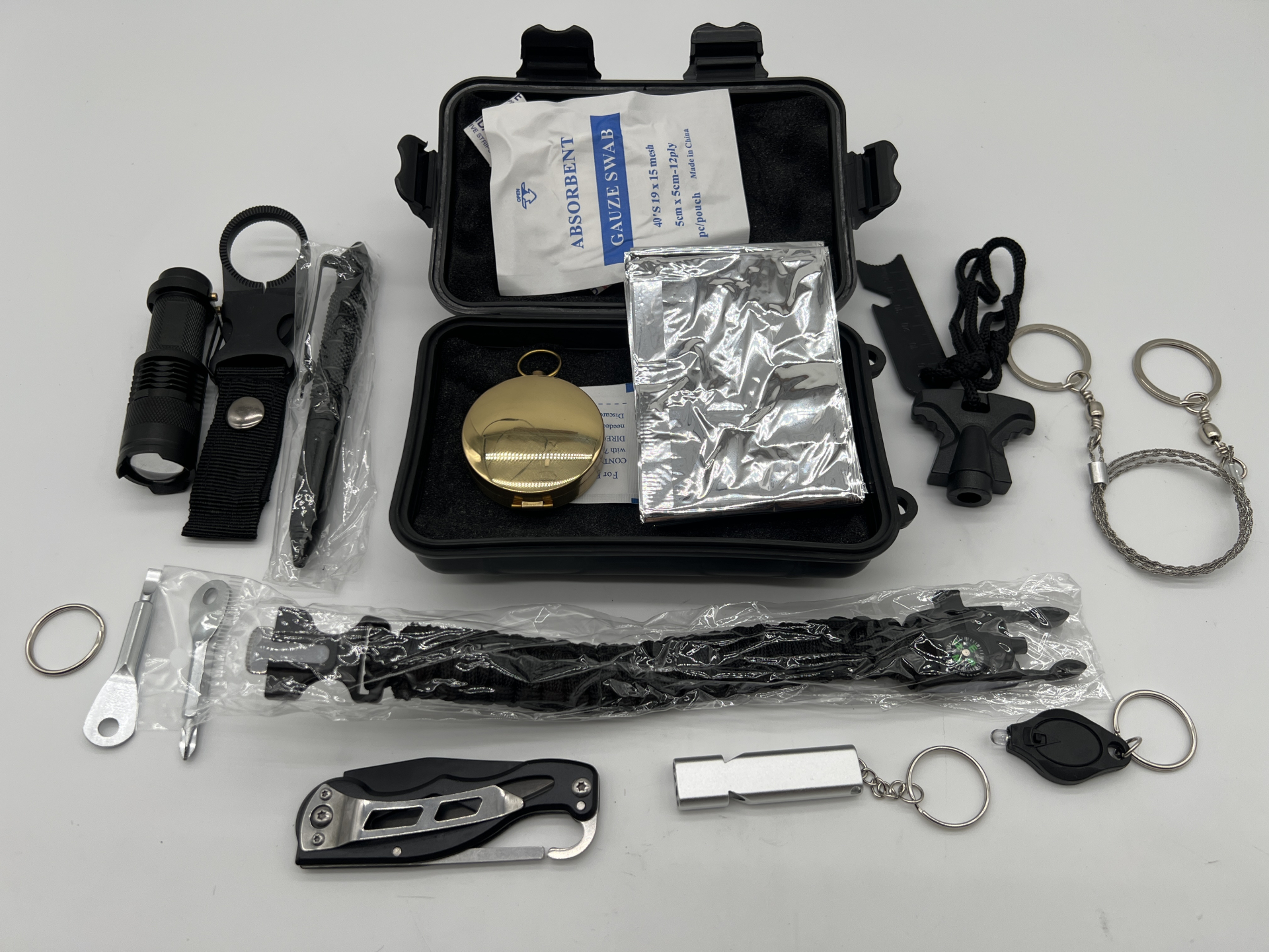 Coffret étanche d’accessoires tactiques et de survie – 18 pièces