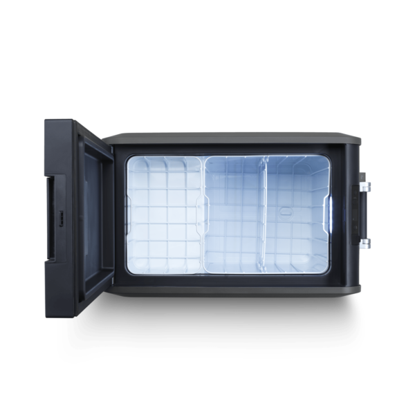 Le CFX5 45 présente un encombrement minimal, contient 72 cannettes de 330 ml et 10 bouteilles de 1,5 L et est le réfrigérateur portable à compression idéal pour vos séjours en camping, et le réfrigérateur portable pour le fourgon aménagé ou le bateau. Les panneaux isolants sous vide offrent une excellente isolation et un refroidissement économe en énergie. Vous pouvez le contrôler grâce à notre application Dometic Mobile Cooling. La construction robuste est prête pour la route. Il dispose d’un ouvre-bouteilles intégré.