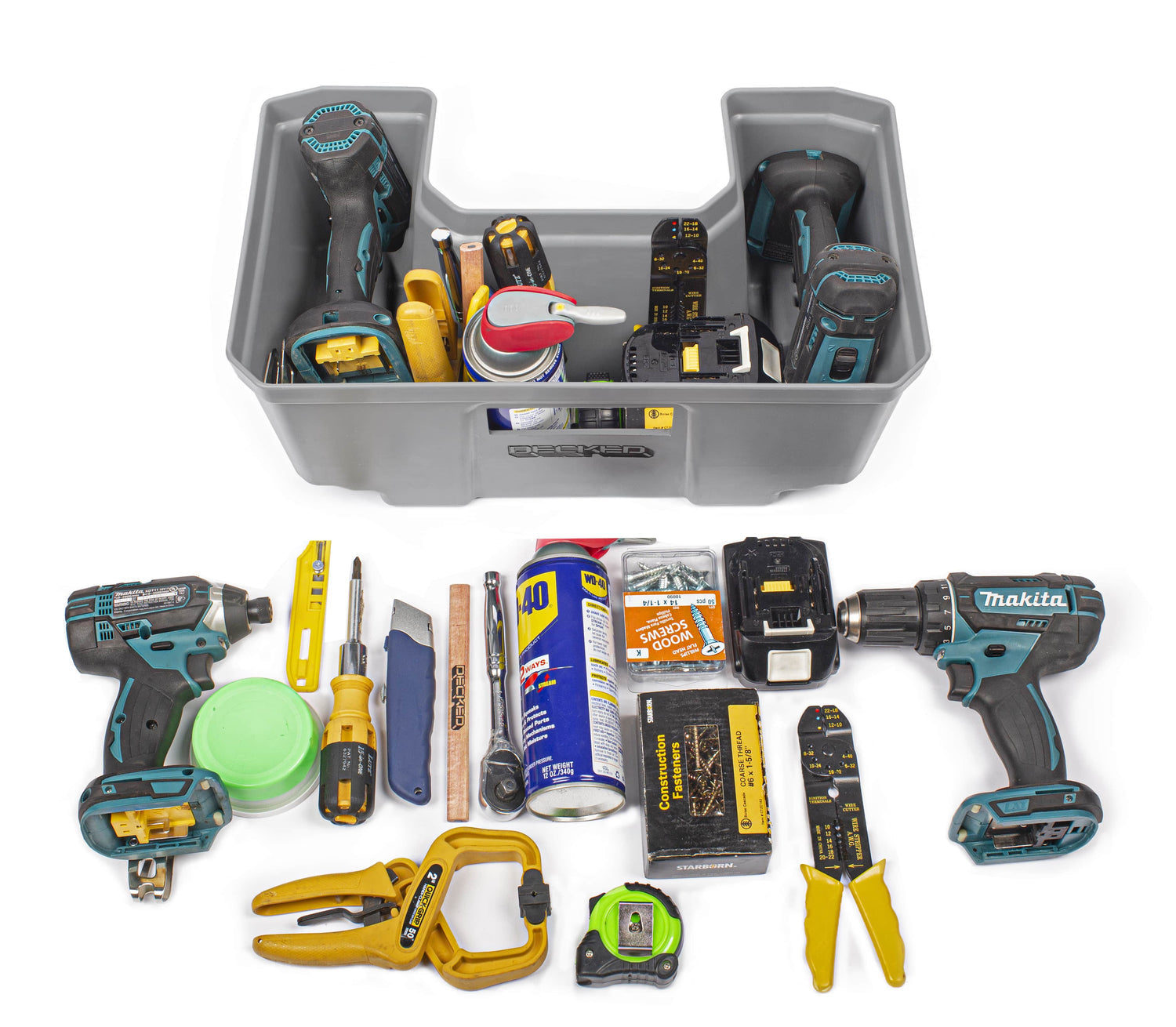 Le Drawerganizer DECKED™ s’adapte à tous les tiroirs de pickup et de fourgonnettes full-size et aux tiroirs larges de fourgons midsize Ne convient PAS aux tiroirs étroits des fourgons midsize.