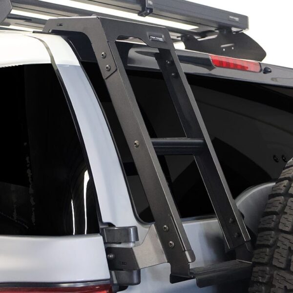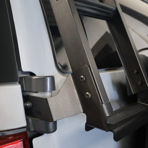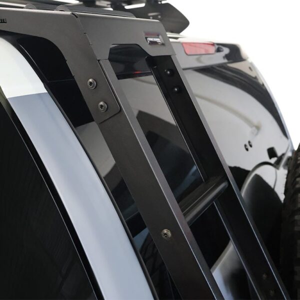 L’échelle Toyota FJ Cruiser permet un accès rapide à votre galerie de toit et à votre équipement. L’échelle solide, recouverte de poudre noire, se fixe au-dessus de la vitre arrière, ce qui facilite l’accès au porte-bagages par l’arrière.