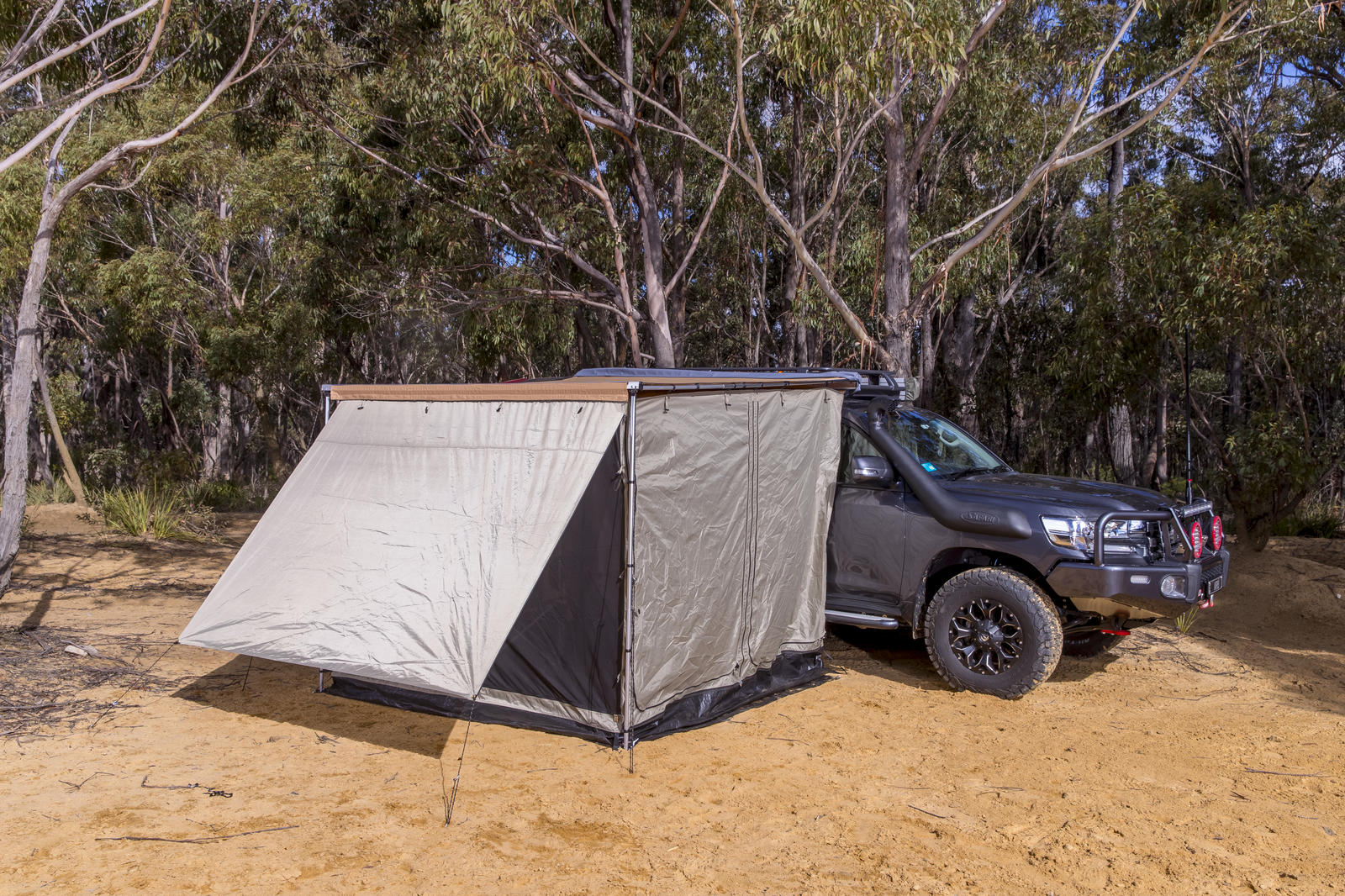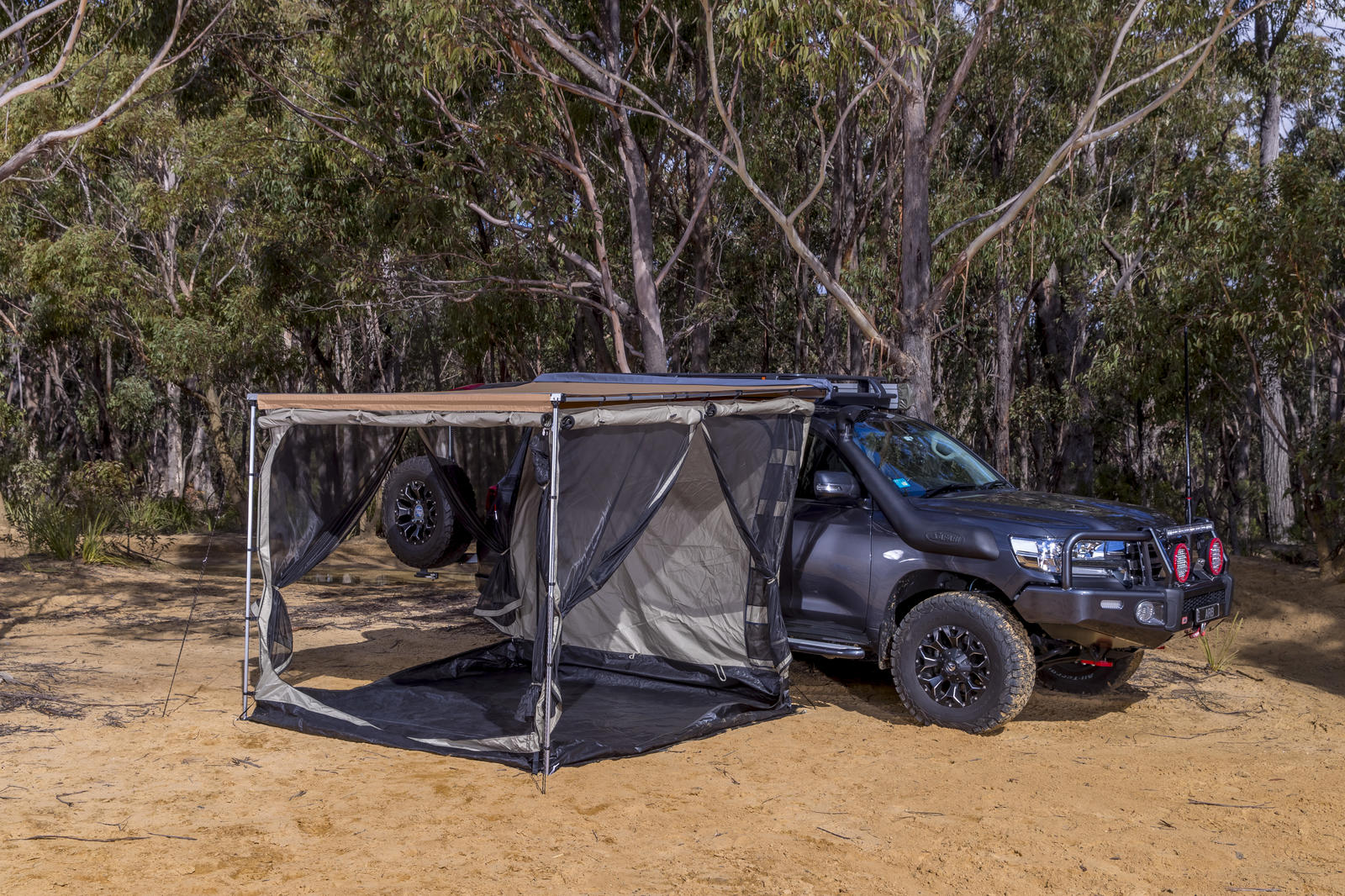 Designed to function as a fully enclosed room or mosquito net, the new ARB Deluxe awning room with floor provides protection from the weather, insects and provides additional privacy. Easy and quick to set up the ARB Deluxe awning room can be used with 2500mm model awnings and features a durable waterproof floor and its own separate ceiling to help keep you cooler.