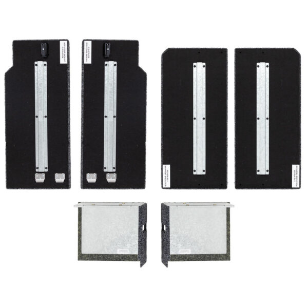 Each side floor kit contains both left and right hand side floors. Stainless steel locking tabs locate and retain one end of the removable floor section, while the other end is attached with a simple to use push to close latch. A single lever disengages the latch for floor removal. The combination of stainless steel tabs and a simple straight forward latch, results in a very easy to use and secure storage area.