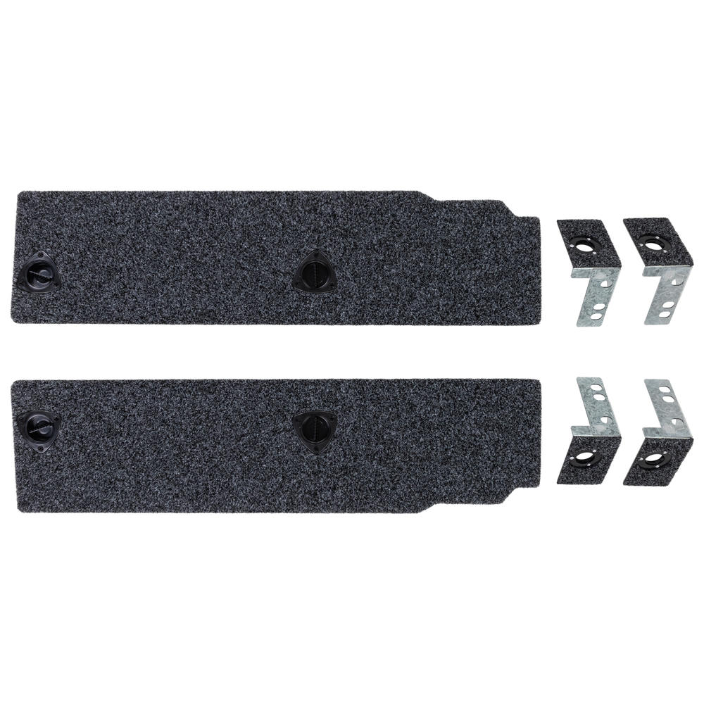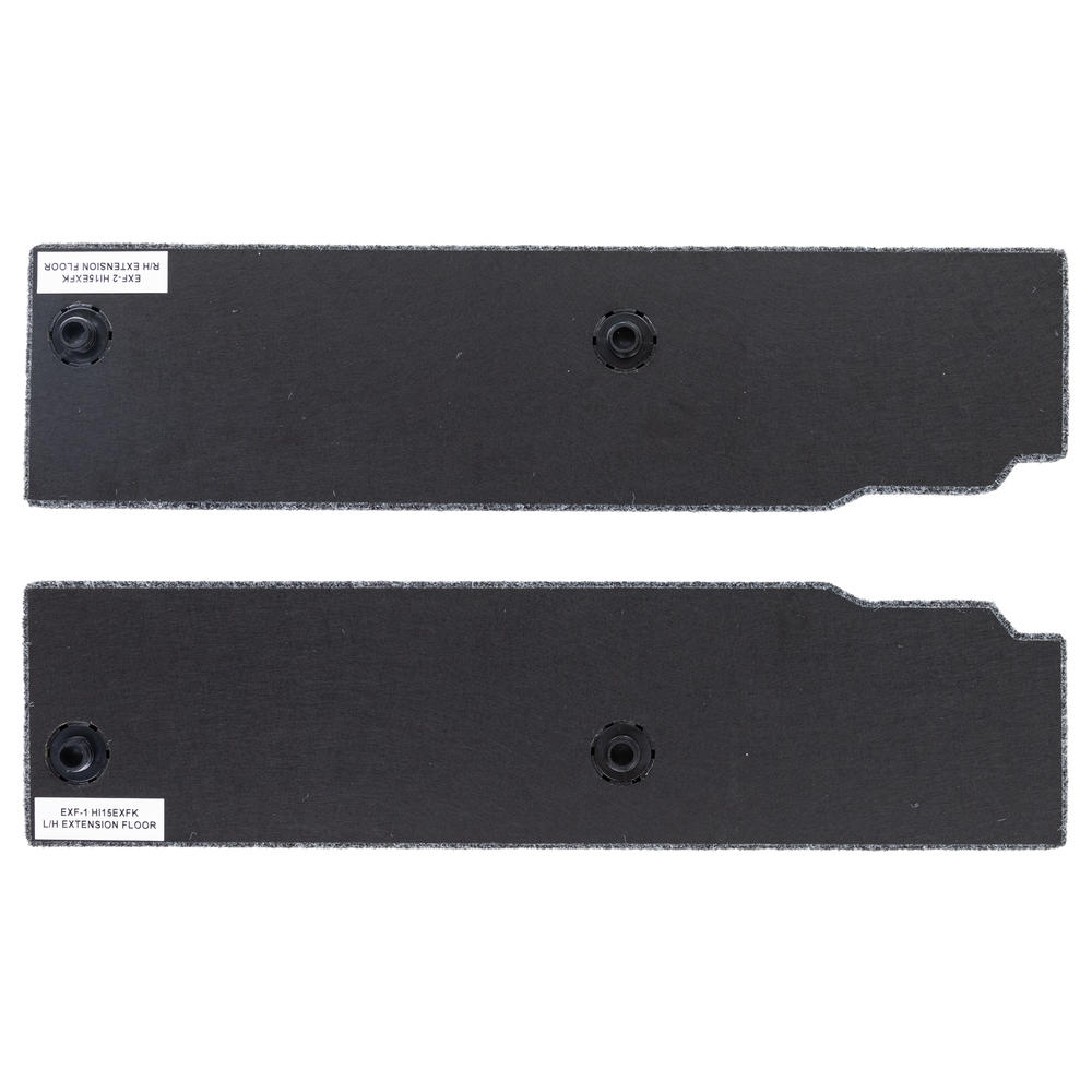 Each side floor kit contains both left and right hand side floors. Stainless steel locking tabs locate and retain one end of the removable floor section, while the other end is attached with a simple to use push to close latch. A single lever disengages the latch for floor removal. The combination of stainless steel tabs and a simple straight forward latch, results in a very easy to use and secure storage area.