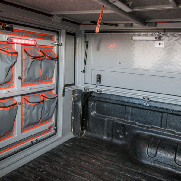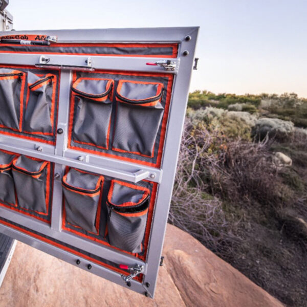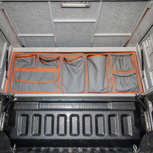L’avant du Hardtop Canopy Camper peut être équipé de poches de rangement en tissu toile robuste.