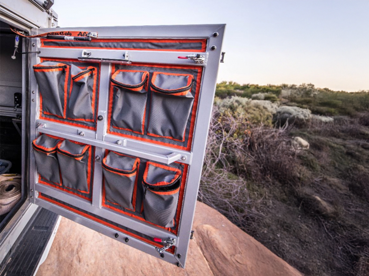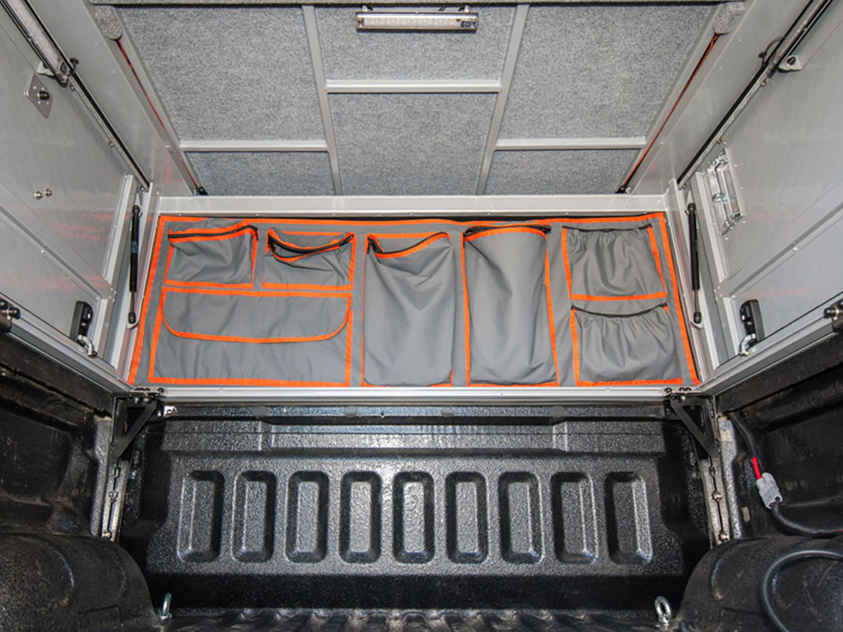 L’avant du Hardtop Canopy Camper peut être équipé de poches de rangement en tissu toile robuste.
