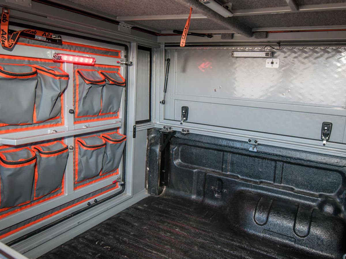 Avec sa grande porte arrière et les deux panneaux latéraux ouvrants, le Hardtop Canopy Camper offre une large gamme d’options pour personnaliser l’intérieur.