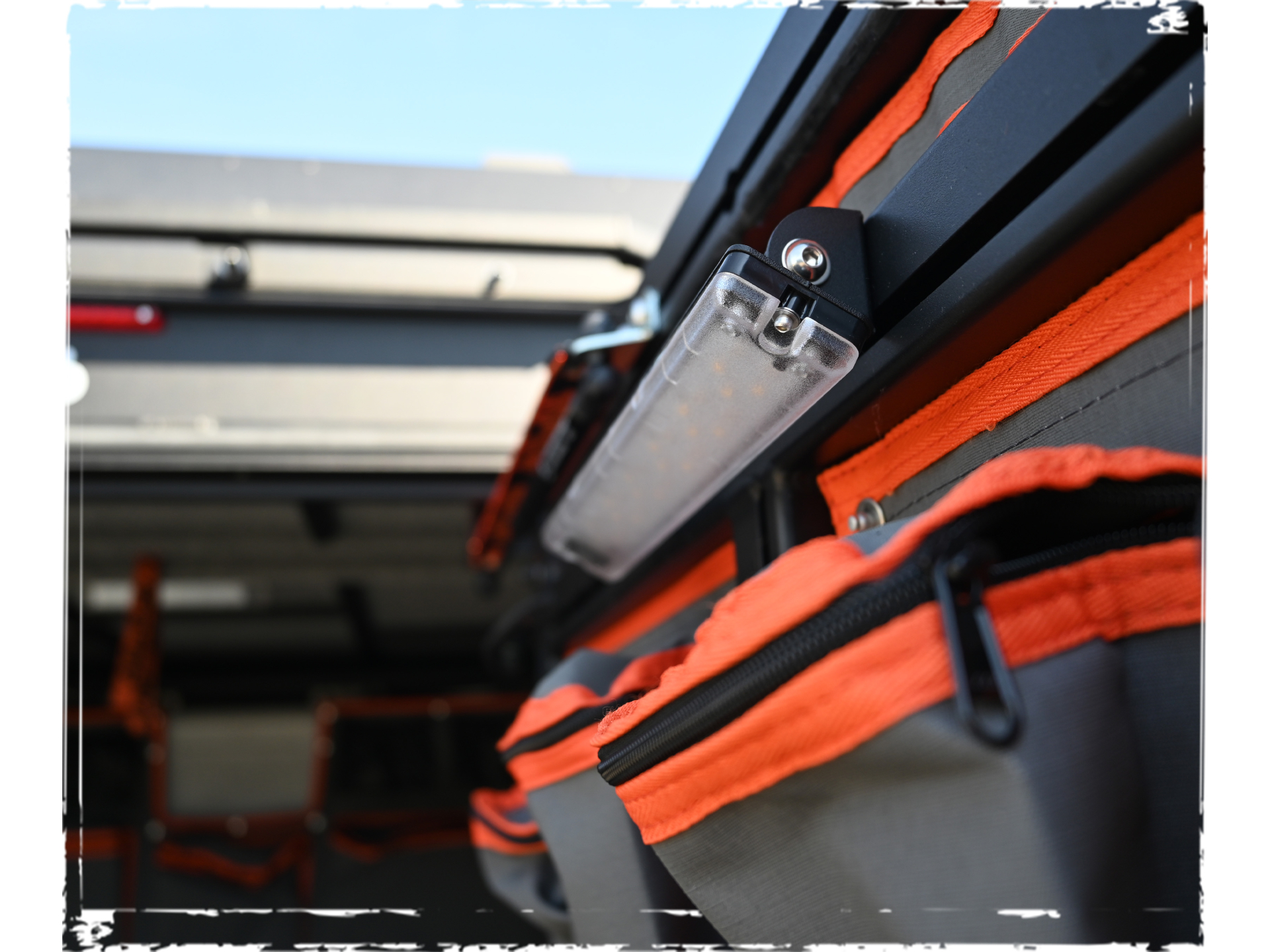 L’avant du Hardtop Canopy Camper peut être équipé de poches de rangement en tissu toile robuste.