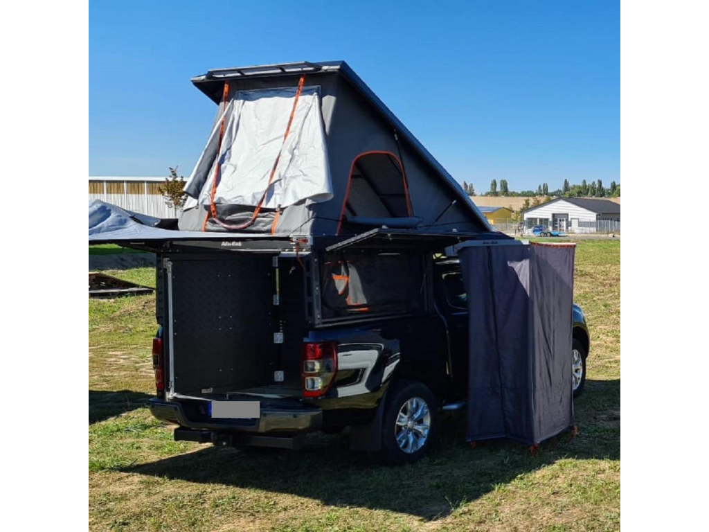 Le Auvent Shadow à ouverture 270°est fixé sur la longueur du Canopy Camper côté gauche il est autoportant et rapide à installer. Celui-ci couvre une surface de 10m2 à la fois le côté et l’arrière du hardtop et peut être fermé à l’aide de parois latérales optionnelles disponibles.