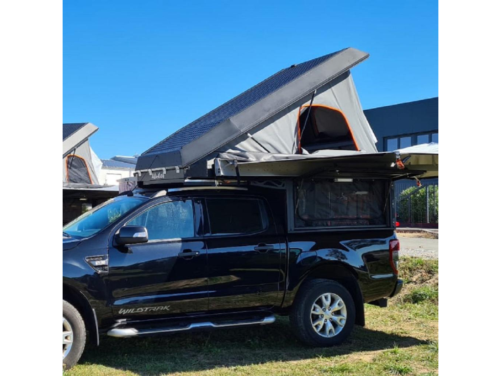 Le Hardtop Canopy Camper de chez Alu-Cab combine les avantages d’un robuste hardtop en aluminium avec un toit relevable spacieux et facilement accessible depuis l’intérieur.