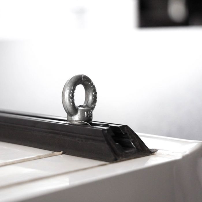 - 4 x profilés de renfort de toit dotés de fentes sur toute la longueur afin que les boulons M8 puissent servir de points de montage à n’importe quel endroit. Cela permet par exemple d’accrocher une table ou un filet à bagages à l’intérieur du toit.