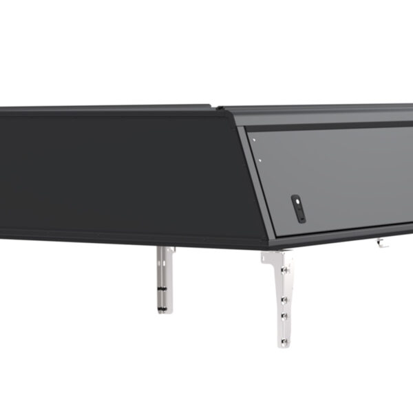 Pensé pour la modularité, ce hardtop est équipé de rails en C intégrés sur le toit et de rails en T à l’intérieur, permettant l’installation d’accessoires, de systèmes de rangement ou d’équipements de portage. Les trois ouvrants (gauche, droite et arrière) offrent un accès pratique à la benne, tandis que la fermeture à recouvrement avec double joint assure une étanchéité fiable face à la pluie, au vent et à la poussière. Le montage s’effectue par boulonnage sur les points d’arrimage d’origine du véhicule, sans perçage.