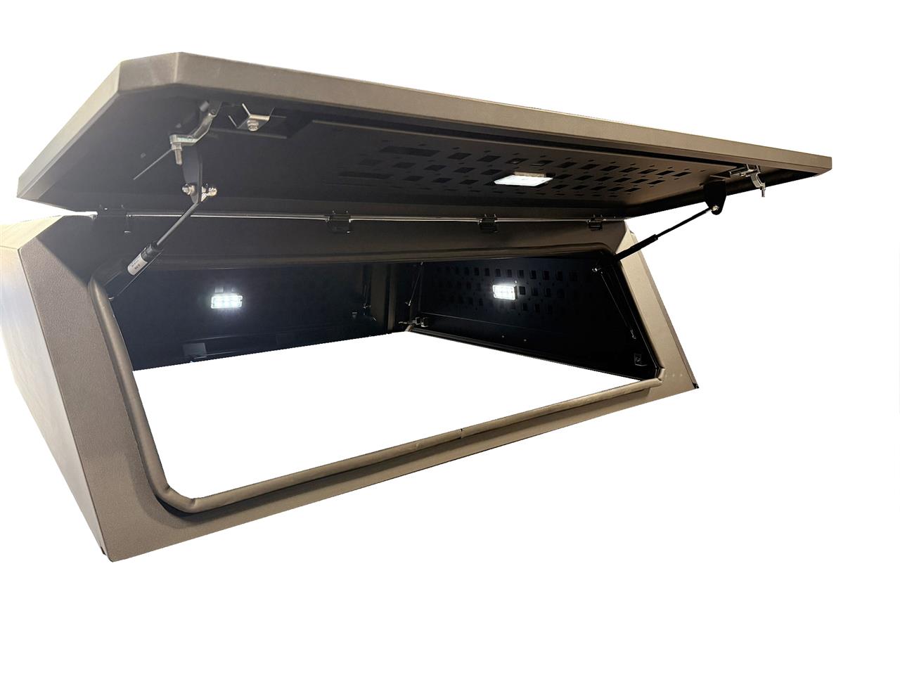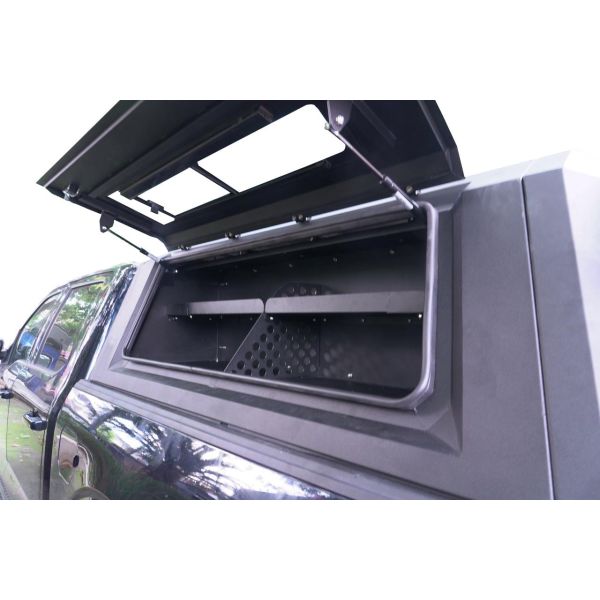Cette configuration en fait une solution idéale pour les véhicules professionnels transportant de l’outillage les pick-up utilisés en zones isolées ou en conditions off-road ainsi que pour les aménagements Camp & Work nécessitant un espace entièrement sécurisé. Sa structure en aluminium soudé garantit une excellente résistance aux contraintes mécaniques aux vibrations et aux conditions difficiles rencontrées sur piste en chantier en montagne ou sur terrain accidenté.