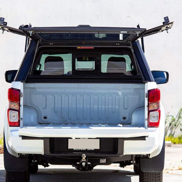 Conçu spécialement pour l’Isuzu D-MAX N60 Double Cab (à partir de 2020), le SmartCap EVOs Sport combine design angulaire, résistance et fonctionnalité. Chaque panneau en acier est renforcé, avec des portillons latéraux à serrure plate, une porte arrière vitrée et des cristaux teintés pour une finition élégante et une sécurité optimale.