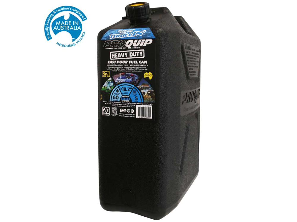Ce jerrycan en plastique de 20L est spécialement conçu pour le stockage de diesel ou d’essence sans plomb. Grâce à son système de versement rapide, il permet de vider 20 litres de carburant en moins de 60 secondes, offrant ainsi une grande efficacité. Fabriqué en Australie, il se distingue par sa construction robuste et durable. Le bec verseur est rangé à l’intérieur pour éviter la contamination par la poussière, tandis que le bouchon de ventilation intégré assure un versement fluide sans éclaboussures. Conforme à la norme australienne AS2906:2001, il est idéal pour une utilisation avec des porte-bidons militaires standards et dispose d’un design compact pour un gain d’espace. De plus, il est compatible avec des pièces de rechange disponibles au détail, prolongeant ainsi sa durée de vie, recommandée à 5 ans.