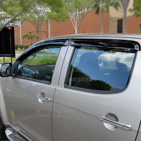 Ils sont conçus pour s’intégrer simplement sur les vitres avant gauche et droite, ainsi que les vitres arrières du véhicule. Livrés en 4 pièces, ils sont fabriqués en acrylique teinté de haute qualité et sont stabilisés contre les rayons UV. Leur système de montage collé par adhésif double face garantit une installation rapide, sans perçage ni outil spécifique, et un maintien fiable dans le temps. Ils offrent une excellente durabilité face aux intempéries et aux conditions extrêmes.