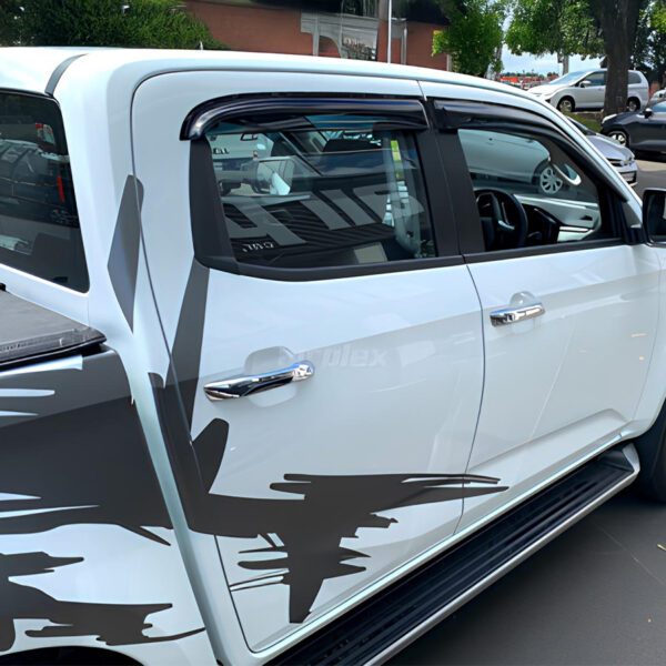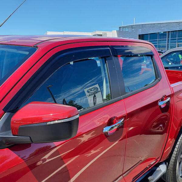 Ils sont conçus pour s’intégrer simplement sur les vitres avant gauche et droite, ainsi que les vitres arrières du véhicule. Livrés en 4 pièces, ils sont fabriqués en acrylique teinté de haute qualité et sont stabilisés contre les rayons UV. Leur système de montage collé par adhésif double face garantit une installation rapide, sans perçage ni outil spécifique, et un maintien fiable dans le temps. Ils offrent une excellente durabilité face aux intempéries et aux conditions extrêmes.