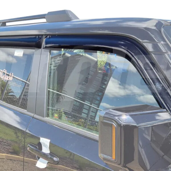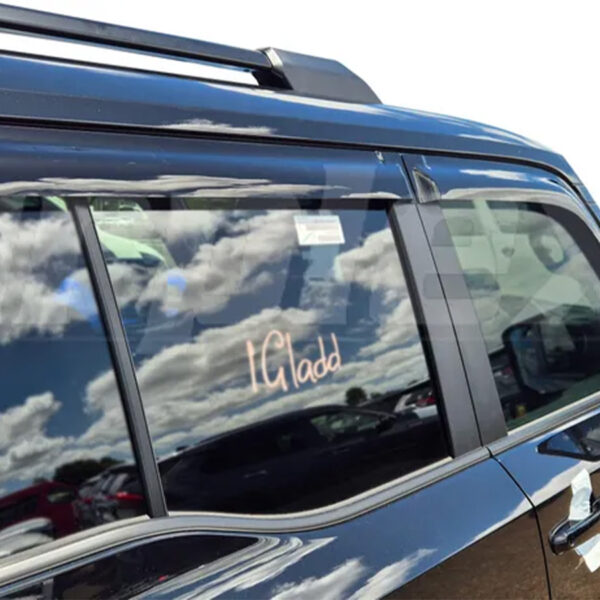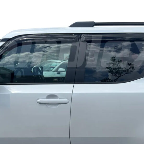 Ils sont conçus pour s’intégrer simplement sur les vitres avant gauche et droite, ainsi que les vitres arrières du véhicule. Livrés en 4 pièces, ils sont fabriqués en acrylique teinté de haute qualité et sont stabilisés contre les rayons UV. Leur système de montage collé par adhésif double face garantit une installation rapide, sans perçage ni outil spécifique, et un maintien fiable dans le temps. Ils offrent une excellente durabilité face aux intempéries et aux conditions extrêmes.