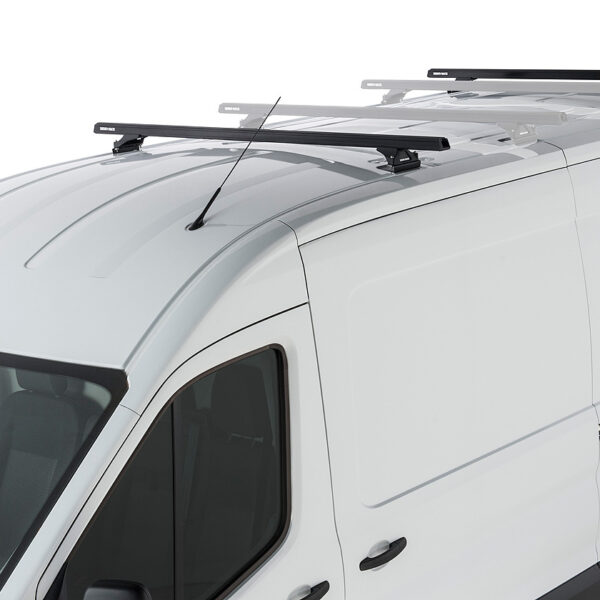 Kit 2 barres de toit noire Heavy Duty 1800mm avec pieds RLTP Ford Transit 2014-