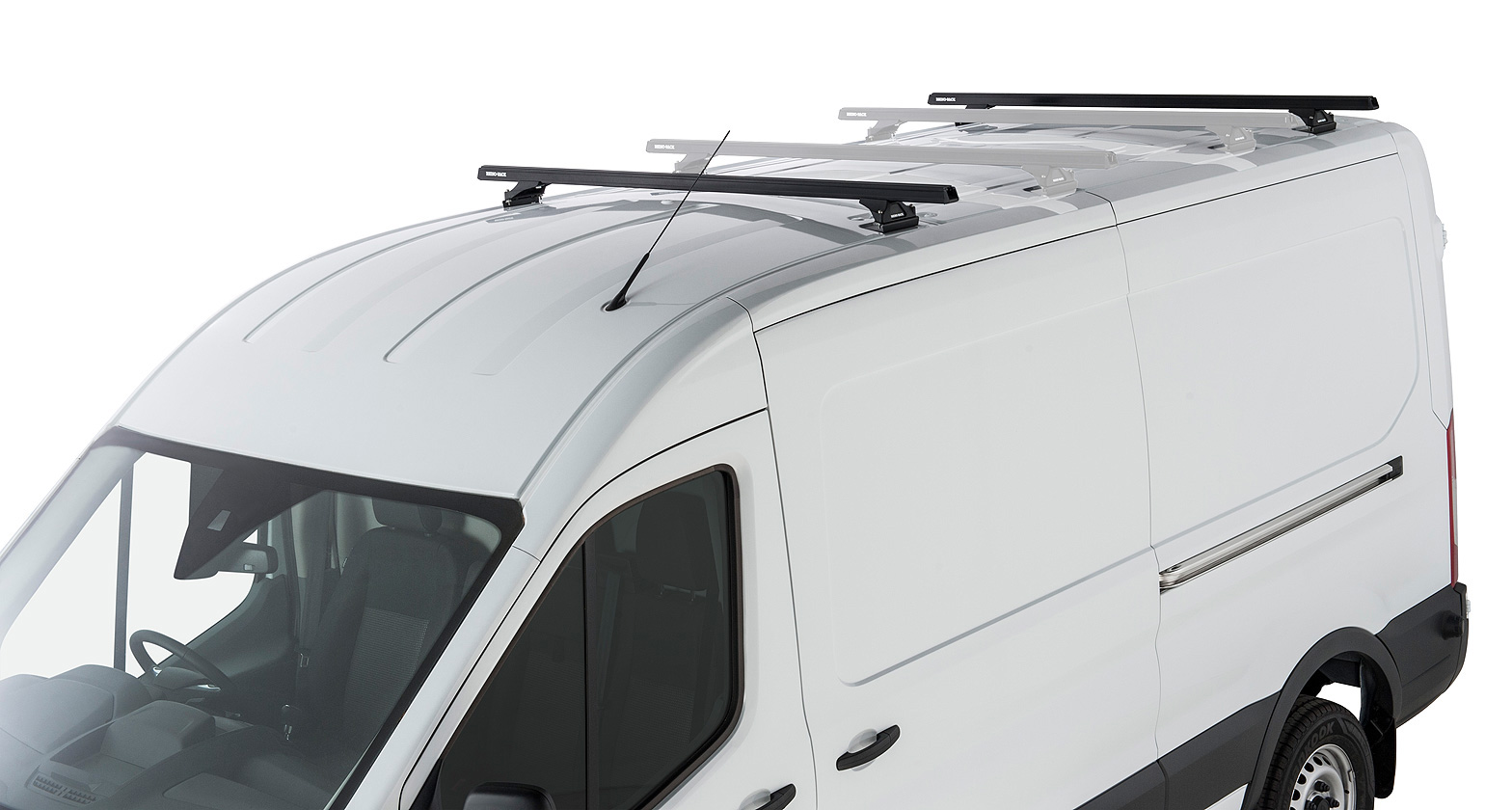 Kit 2 barres de toit noire Heavy Duty 1800mm avec pieds RLTP Ford Transit 2014-