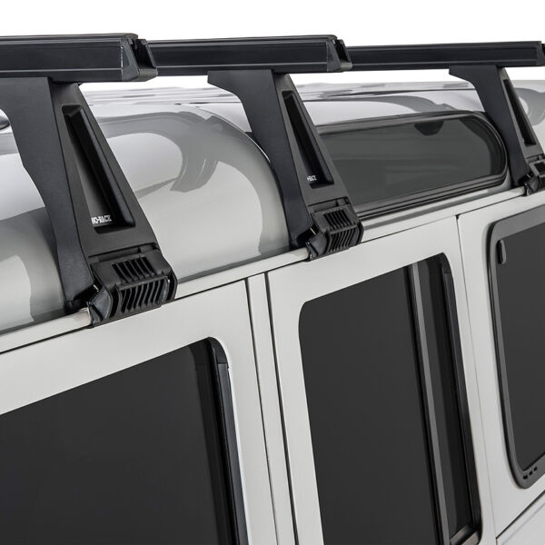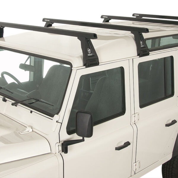 Kit 4 barres de toit noire Heavy Duty 1500mm avec pieds RL210 Land Rover Defender 110 1993-2020
