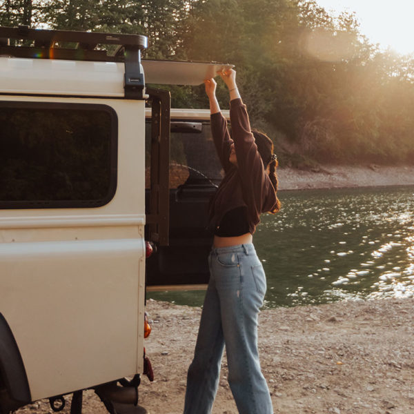 Les supports peuvent être montés à la fois parallèlement et perpendiculairement aux lattes de la galerie de toit, ce qui permet d’accéder à la table depuis le côté ou l’arrière du véhicule.