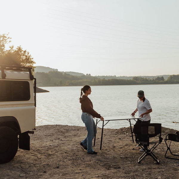Une solution complète de table de camping et de rangement de table. Emportez sans effort un article de luxe auparavant encombrant dans toute aventure en véhicule.