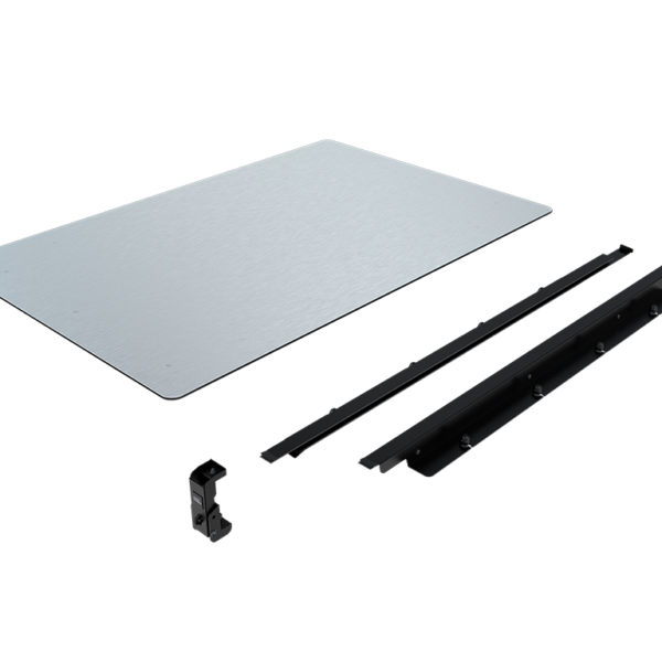 Se fixe au sommet de la galerie de toit Slimline II à l’aide de la fente en T et se fixe sur le rebord de la table pour la maintenir en place.