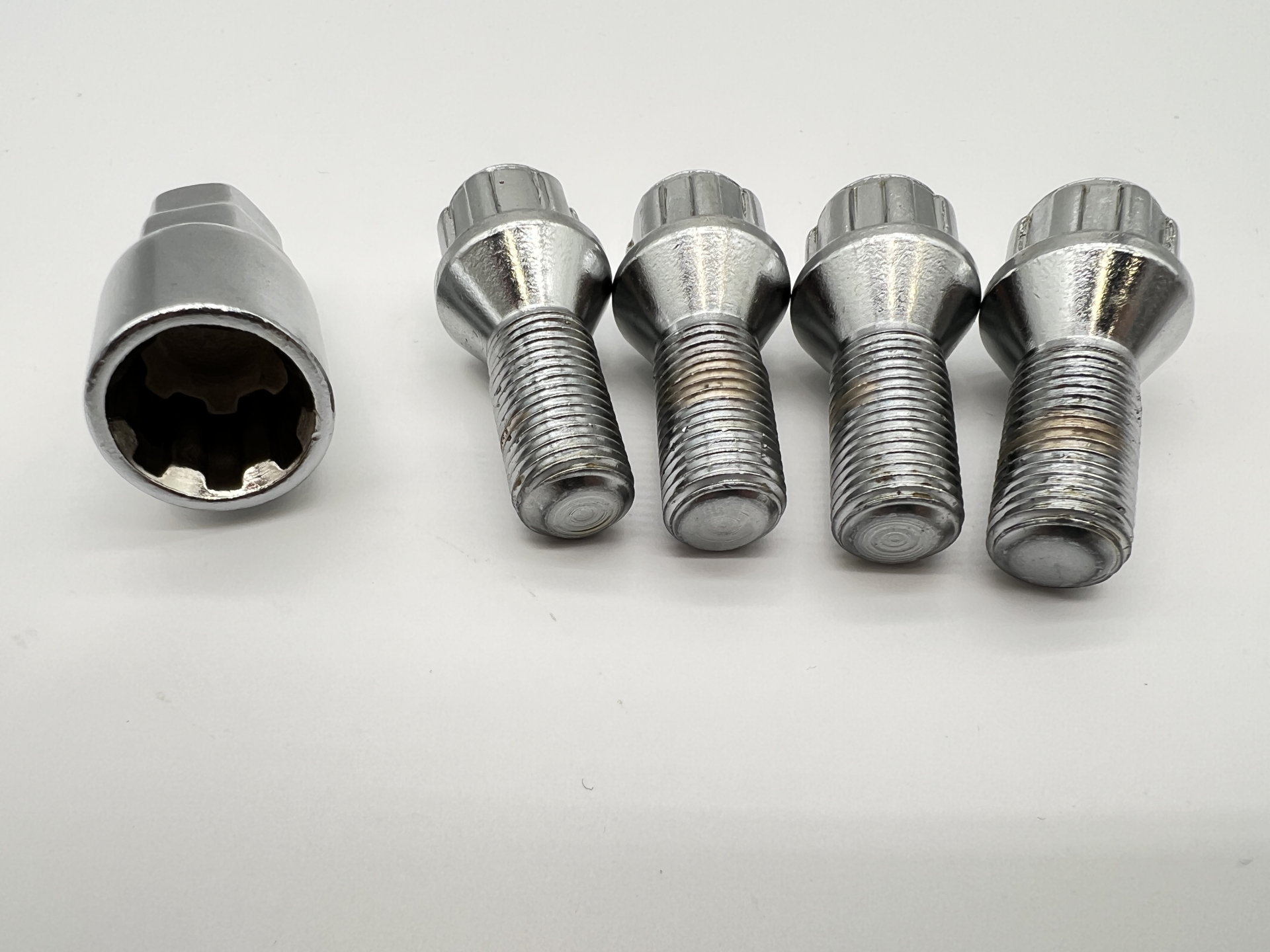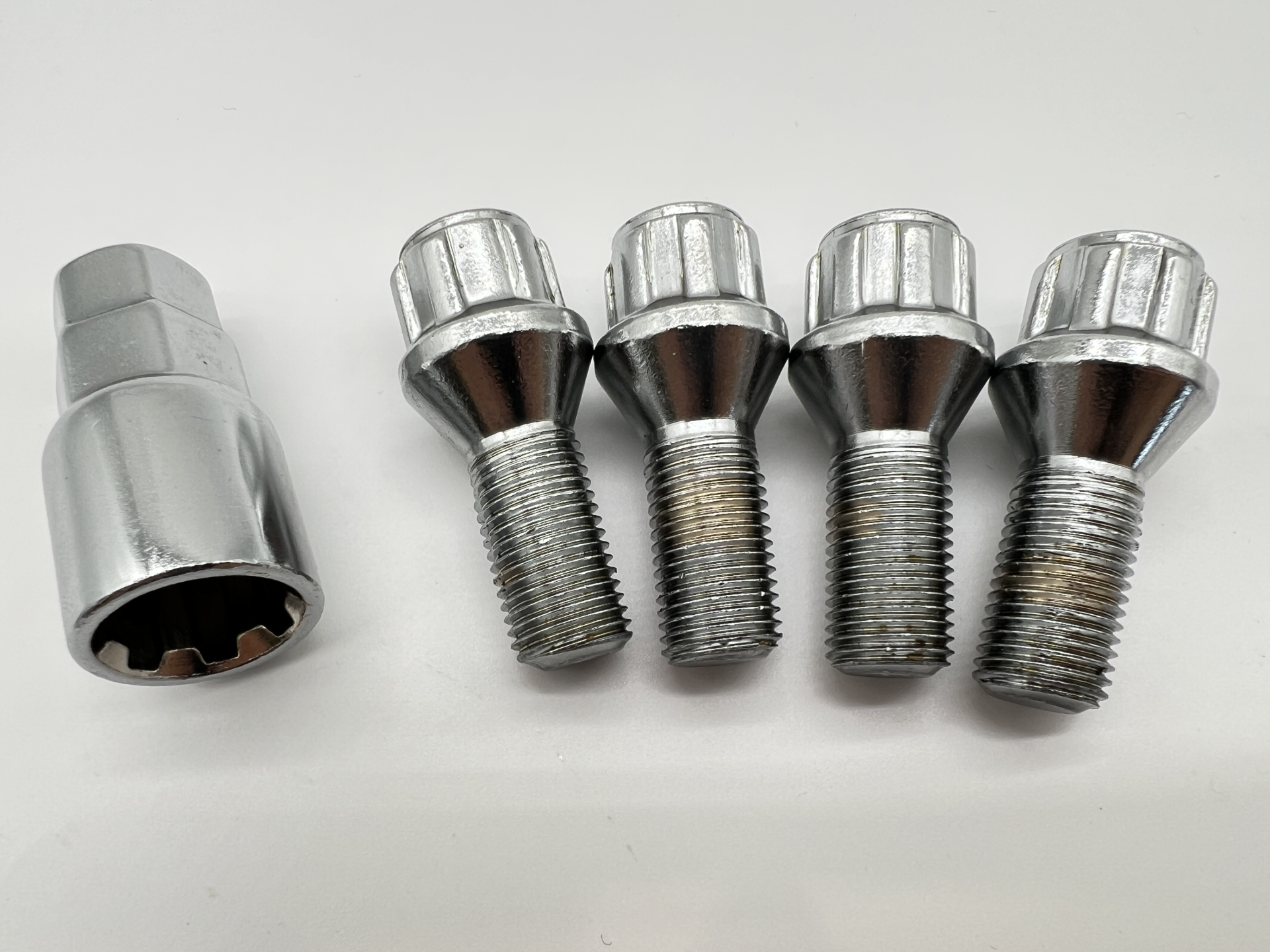 Lot de 4 goujons de roue antivol chromés 14×150 – Cône 60°