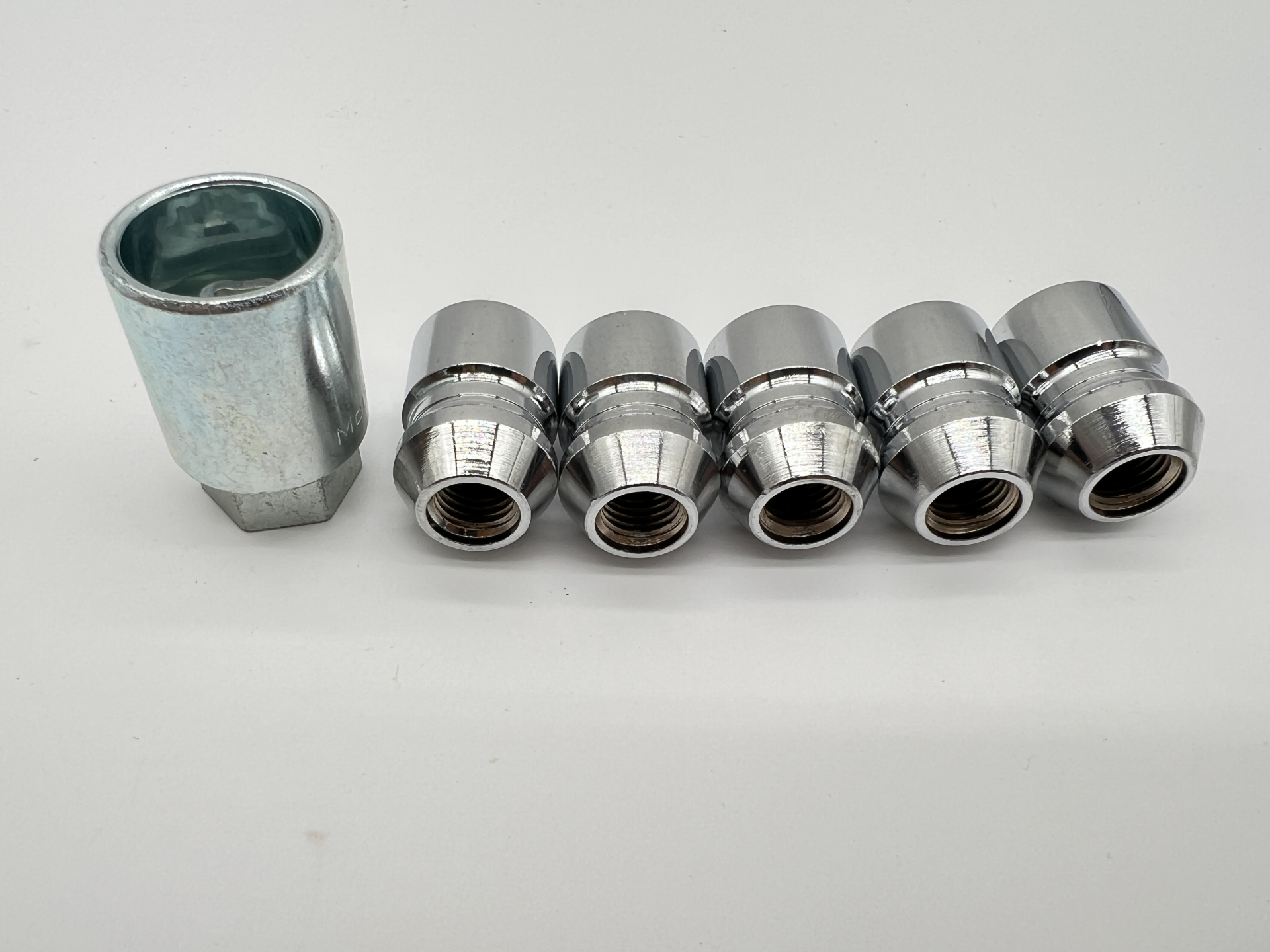 Lot de 5 écrous de roue antivol chromés 12×150 – Cône 60°