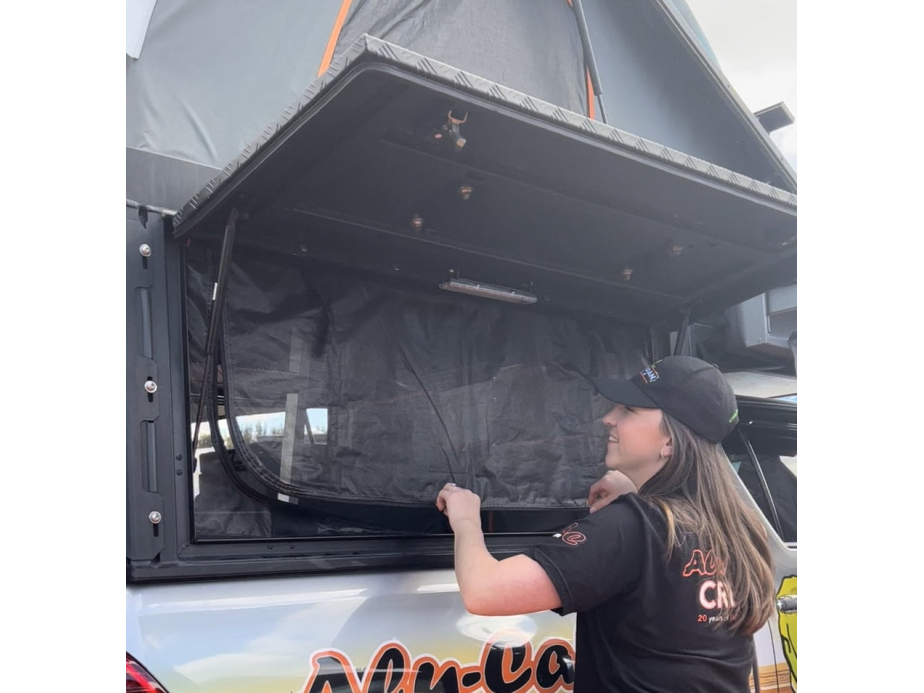 Le filet anti-moustiques ou anti-moucherons est un accessoire pratique utilisé sur nos Hardtop Canopy Campers Alu-Cab pour empêcher les insectes et les moustiques d’entrer