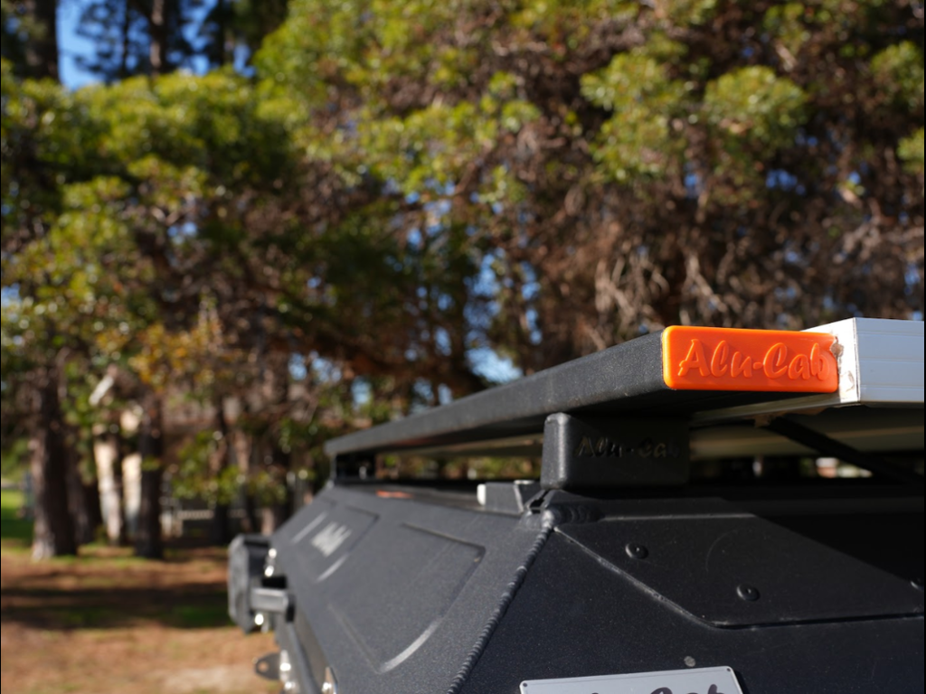 Paire barres de toit transversales 1450mm Alu-Cab – capuchons oranges