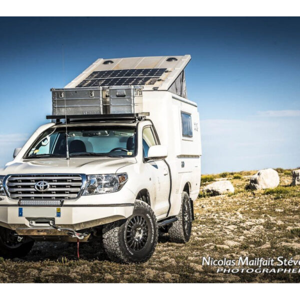 - Conception monobloc en acier assurant une protection efficace de l’avant du Toyota VDJ200 en utilisation raid