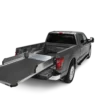 Compatibilité avec le système DECKED à tiroirs : le CargoGlide pour Ford F-150 peut être combiné avec un système de tiroirs DECKED à double plancher afin de mettre le matériel lourd sur le plateau coulissant et les outils et équipements rangés dans les tiroirs inférieurs. Les versions compatibles avec les tiroirs DECKED offrent une extension de 75 % et une charge utile de 454 kg.