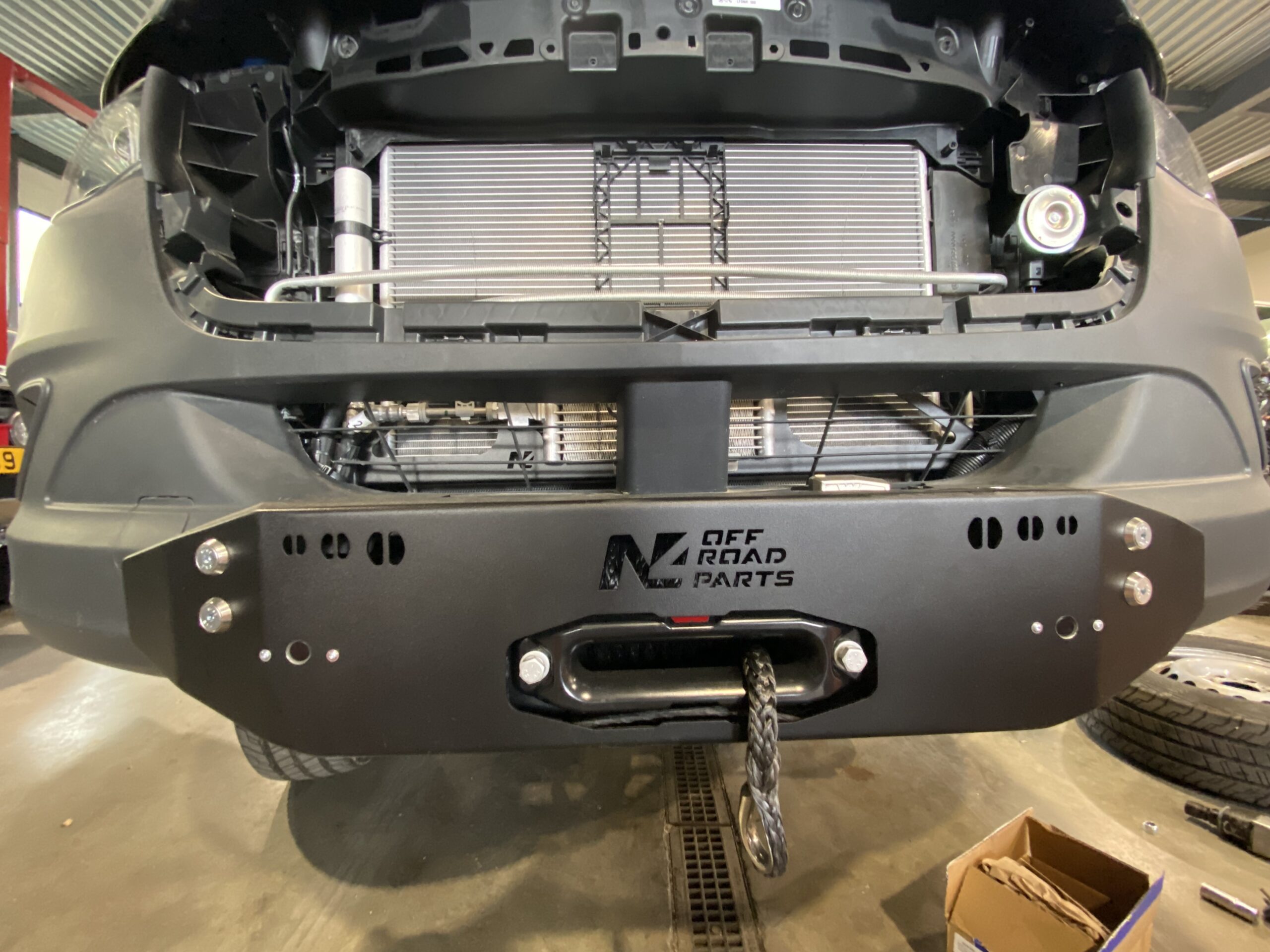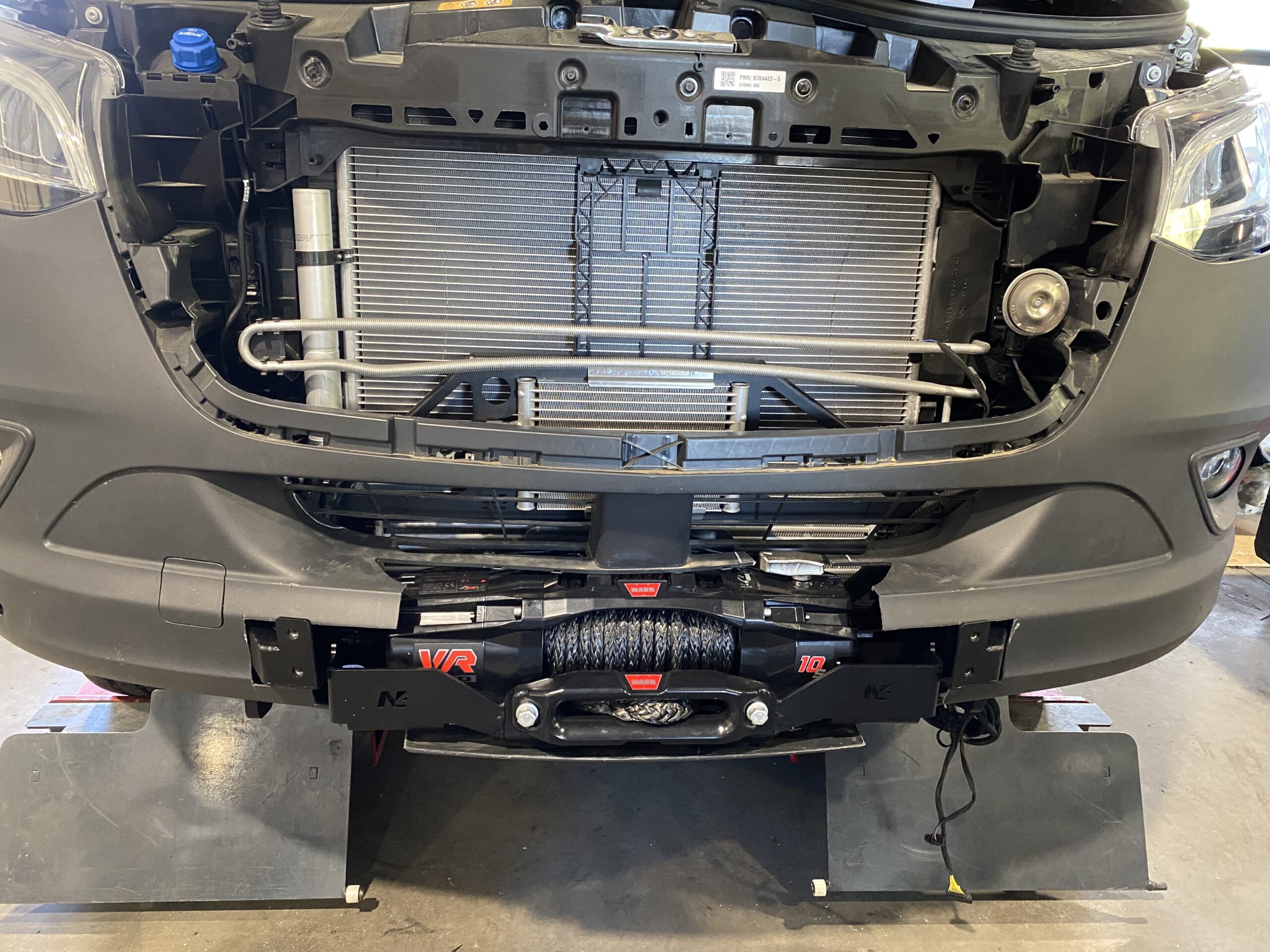 Platine et capot pour le montage d’un treuil dans le pare-chocs d’origine du Mercedes Sprinter W9074x2 ou 4×4 toutes versions N4-Offroad