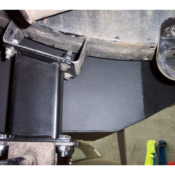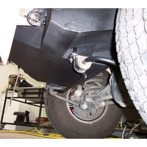 Emplacement optimisé derrière l’essieu arrière, sans interférence avec la roue de secours ou le bras Panhard