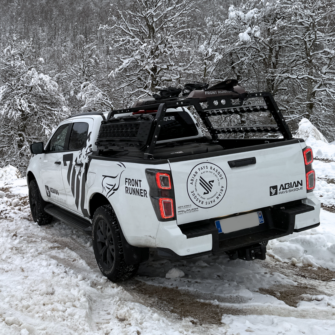 Grâce à sa conception ajustable, cette galerie de toit s’adapte à tous les pick-up et 4×4 du marché :