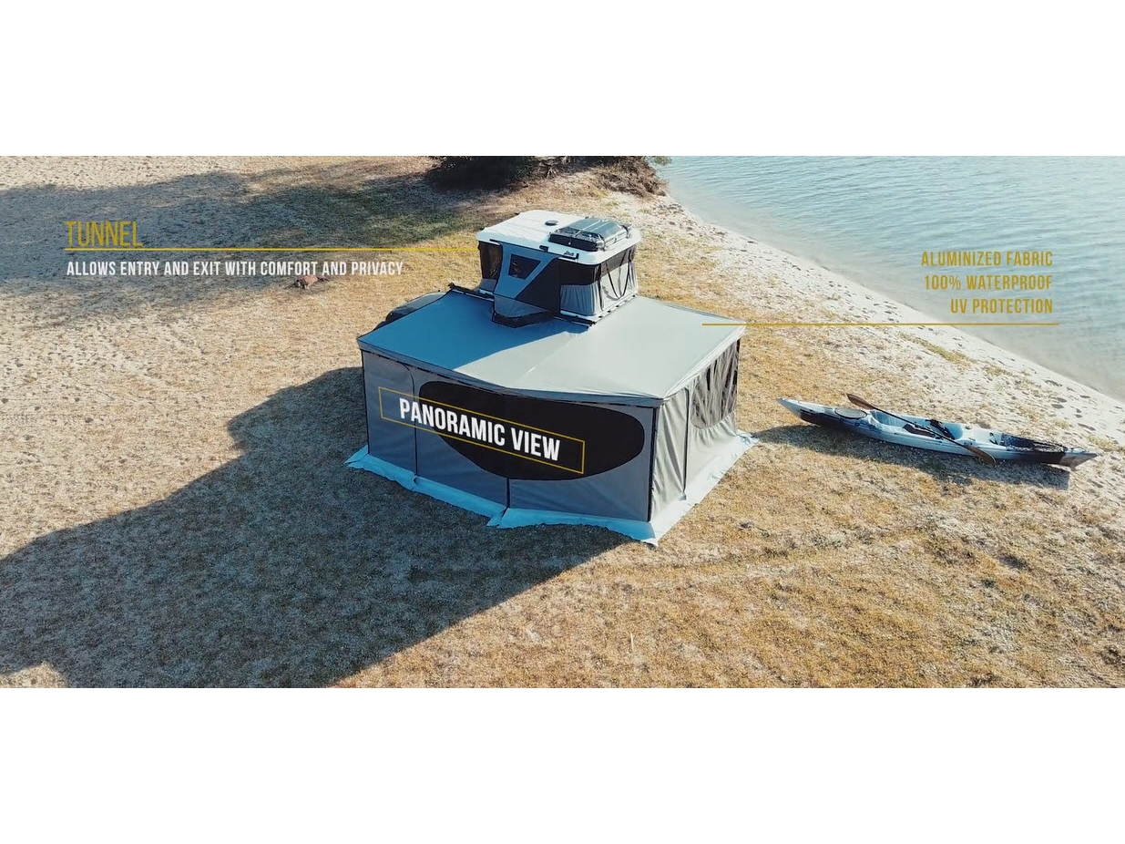 Store Falcon et tunnel de tente: une première mondiale! Lorsque le store Falcon est connecté à un tunnel de tente James Baroud, qui lui même est connecté à une tente de la même marque, on dispose ainsi du plus grand module de bivouac du marché. C’est une exclusivité James Baroud que l’on ne voit chez aucun autre concurrent.