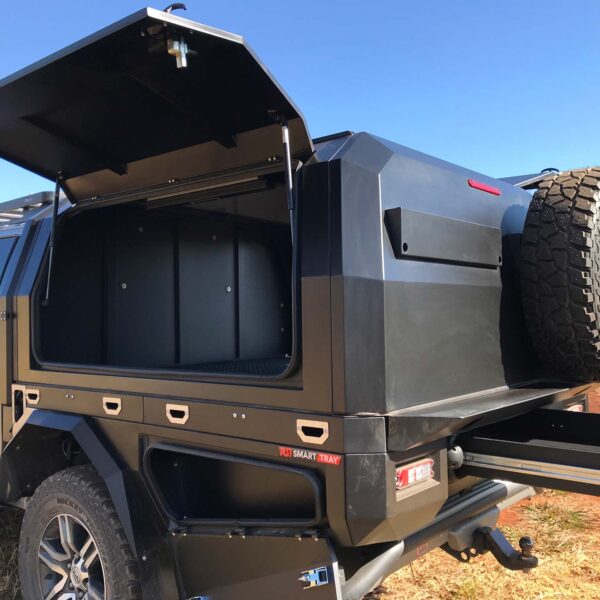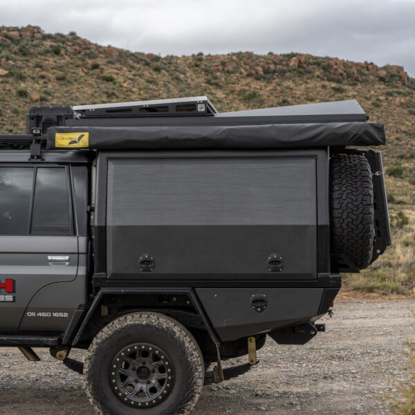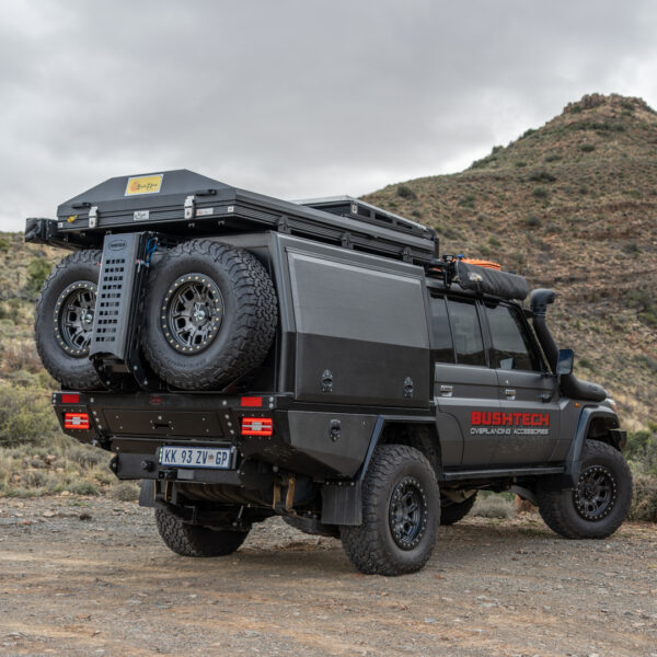 Son ancrage universel permet une compatibilité parfaite avec l’ensemble de la gamme SmartCap XL installée sur : • Toyota Hilux Revo [2016+] • Ford Ranger [2012–2022] • Toyota Land Cruiser série 70 [J76 / J78 / J79 – 2007+] Grâce à son design simple et intelligent, il s’installe directement à l’arrière du hardtop, sans altérer son étanchéité ni ses fonctionnalités. Cette équipement comprend uniquement le support arrière universel (Box Conversion System). Les éléments visibles sur les visuels, tels que roue de secours, jerricans, échelle, pelle ou autres équipements, ne sont pas inclus. Le support s’installe exclusivement sur les hardtops SmartCap XL montés sur les plateaux australiens RSI SmartCap Bed Replacement System.