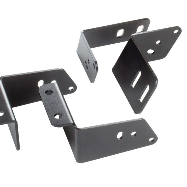 Composé de :1 x jeu de supports de montage avant (1 x côté gauche et 1 x côté droit)1 x jeu de supports de montage en dessous (1 x côté gauche et 1 x côté droit)Matériel d’installationInstructions de montageMatériaux utilisés :Acier en revêtement époxy noirDimensions du produit :160mm (6.3”) x 114mm (4.5”) x 74mm (3”)Poids :0.9kg (2lbs)