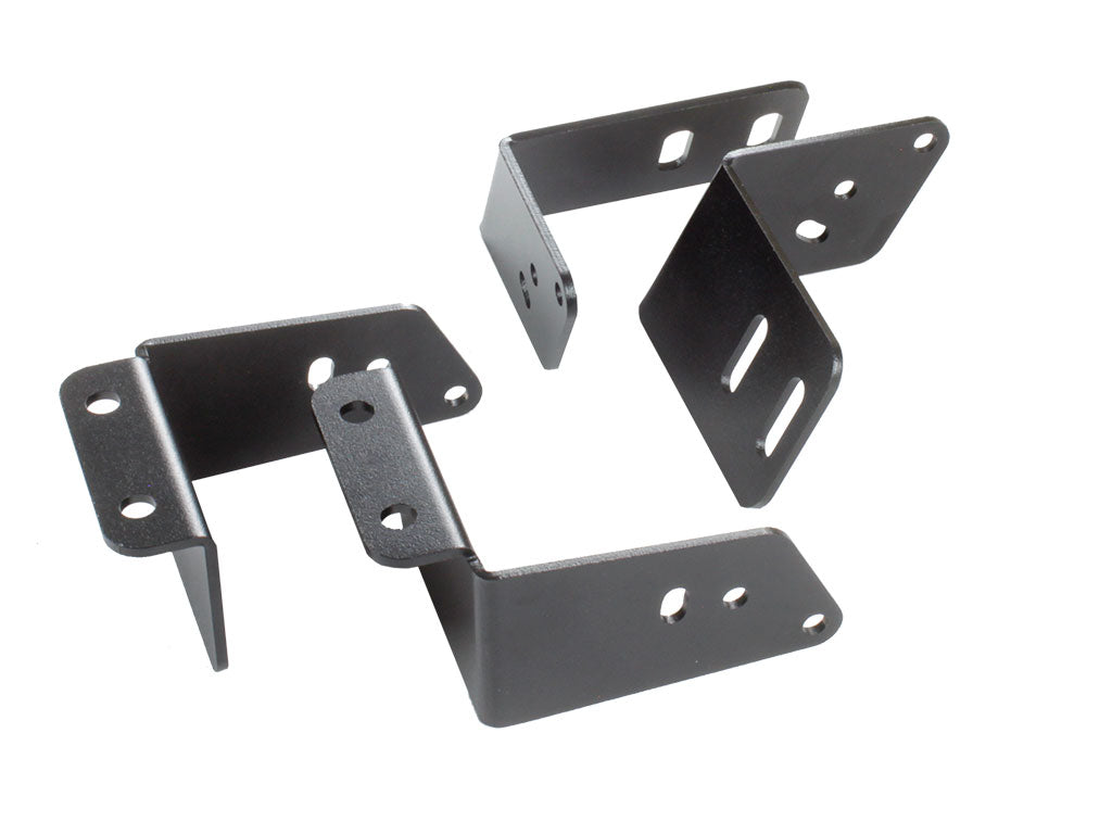 Composé de :1 x jeu de supports de montage avant (1 x côté gauche et 1 x côté droit)1 x jeu de supports de montage en dessous (1 x côté gauche et 1 x côté droit)Matériel d’installationInstructions de montageMatériaux utilisés :Acier en revêtement époxy noirDimensions du produit :160mm (6.3”) x 114mm (4.5”) x 74mm (3”)Poids :0.9kg (2lbs)
