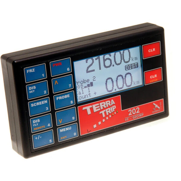 Le 202 GeoTrip est un totalisateur double distance précis avec affichage de la vitesse. Satellite activé qui suit jusqu’à 48 satellites simultanément.