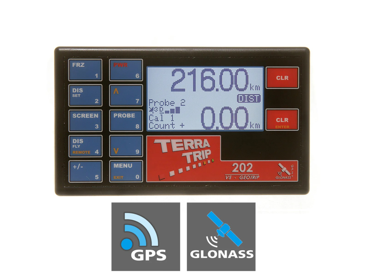 Le 202 GeoTrip est un totalisateur double distance précis avec affichage de la vitesse. Satellite activé qui suit jusqu’à 48 satellites simultanément.